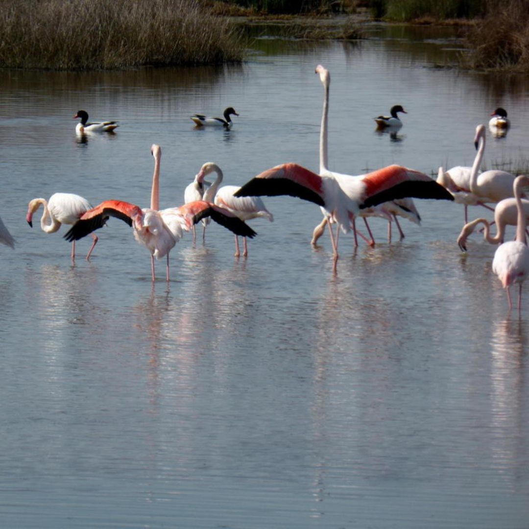Kuş gözlemcileri için özel platformlarla donatılmış tuzlalar.