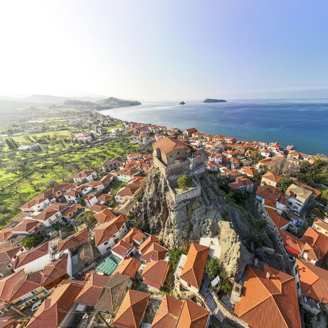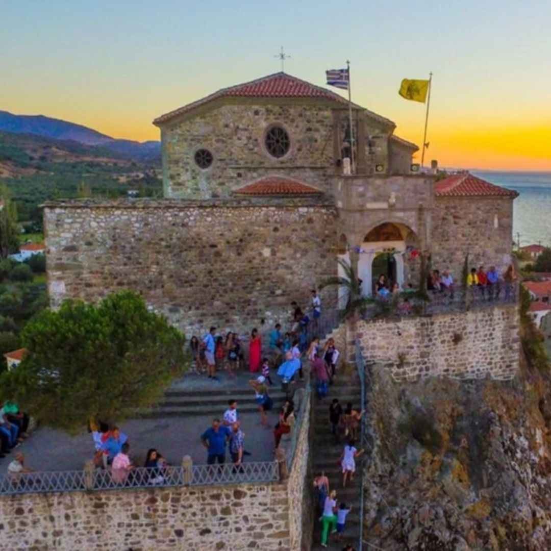Gün doğumu ve gün batımı saatlerinde bu kiliseden izlenen manzara, Midilli’nin en çarpıcı panoramik görüntülerinden biridir. Aşağıda uzanan Petra köyü, geleneksel mimarisiyle kilisenin görkemine eşlik eder.