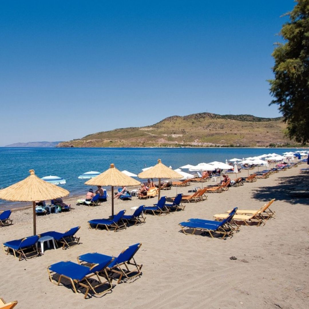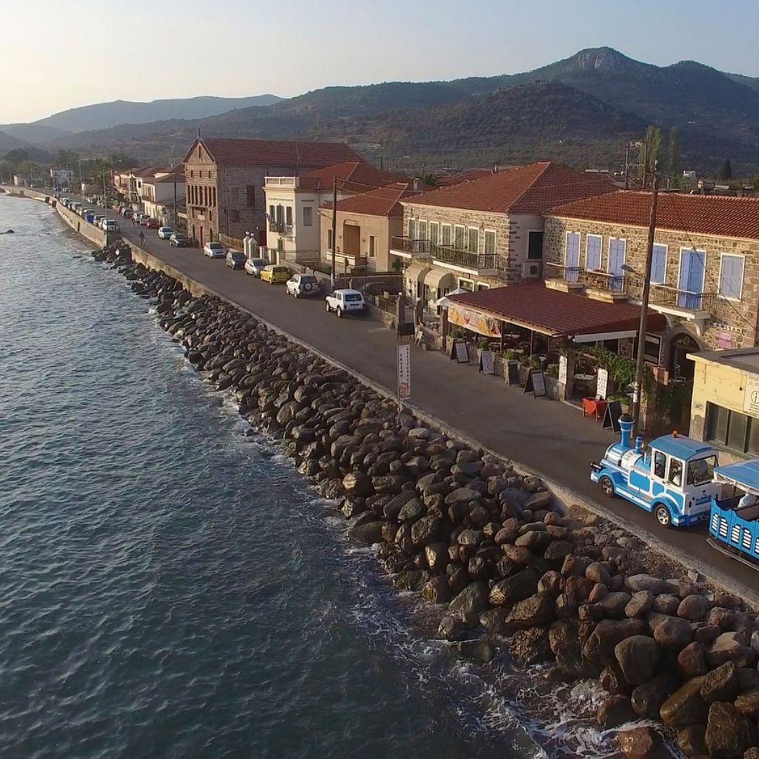 Midilli Adası'nın kuzeybatısında yer alır. Molivos’a 6 km, Midilli merkeze ise yaklaşık 55 km uzaklıktadır. Dikili’den feribotla gelen ziyaretçiler için en çok tercih edilen rotalardan biridir.
